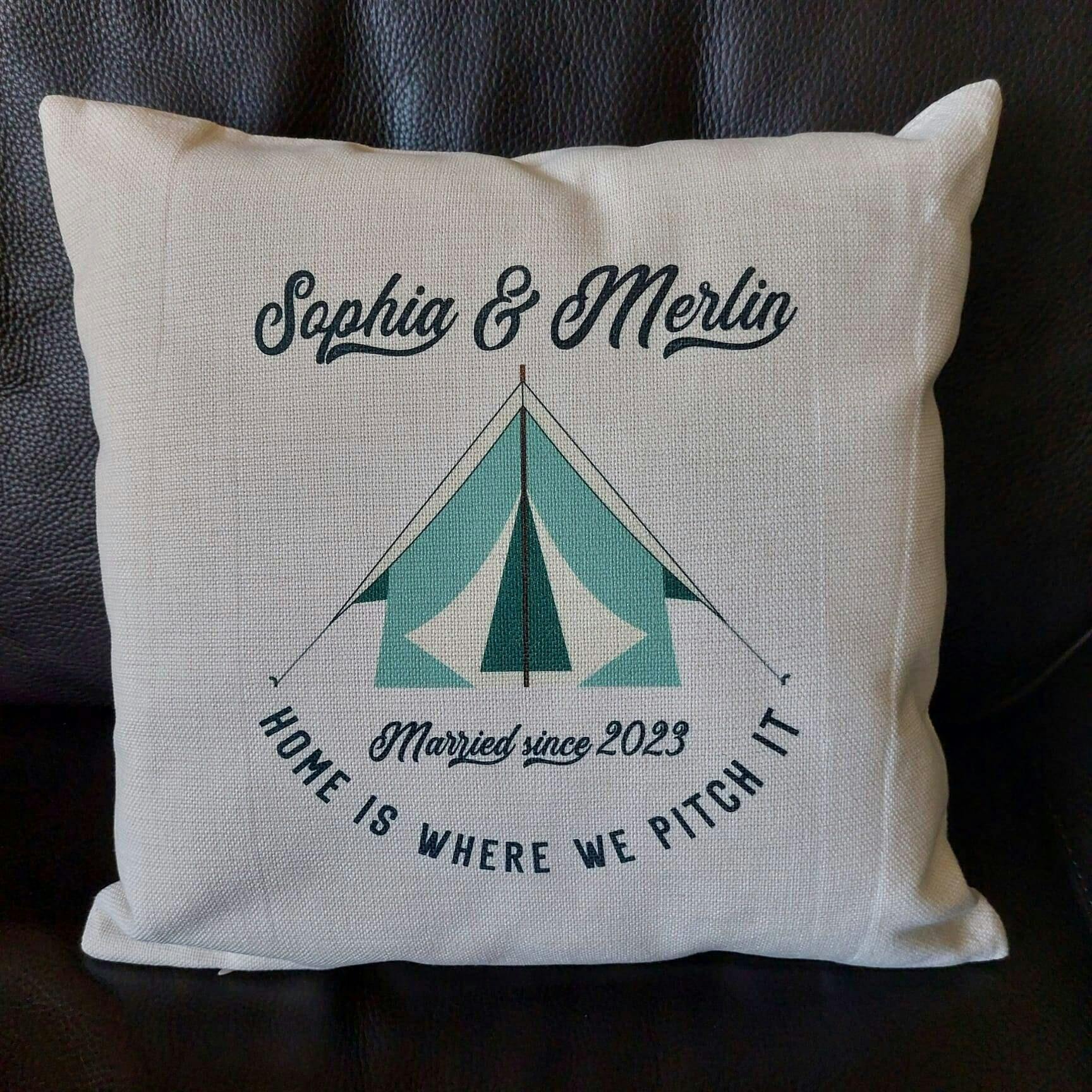 Tent Camp Cushion Personalised Camper Gift for Her Him Couple Travel Accessories