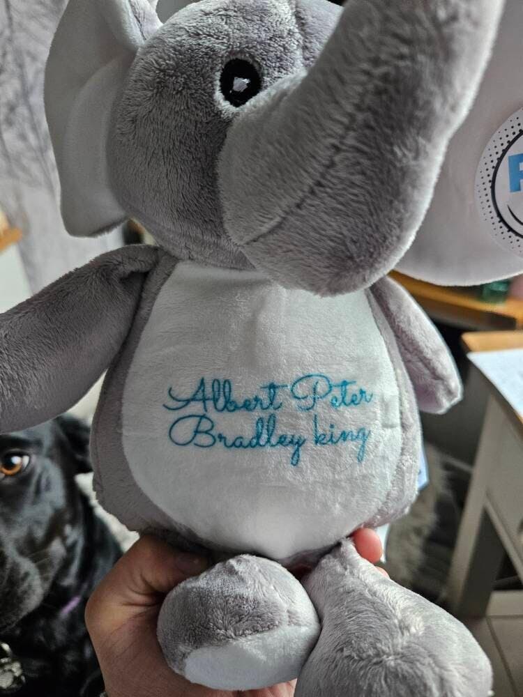 Ordered the elephant and it’s exactly what I was after. Lovely and soft and the personalisation is nice and clear. Quick delivery too!