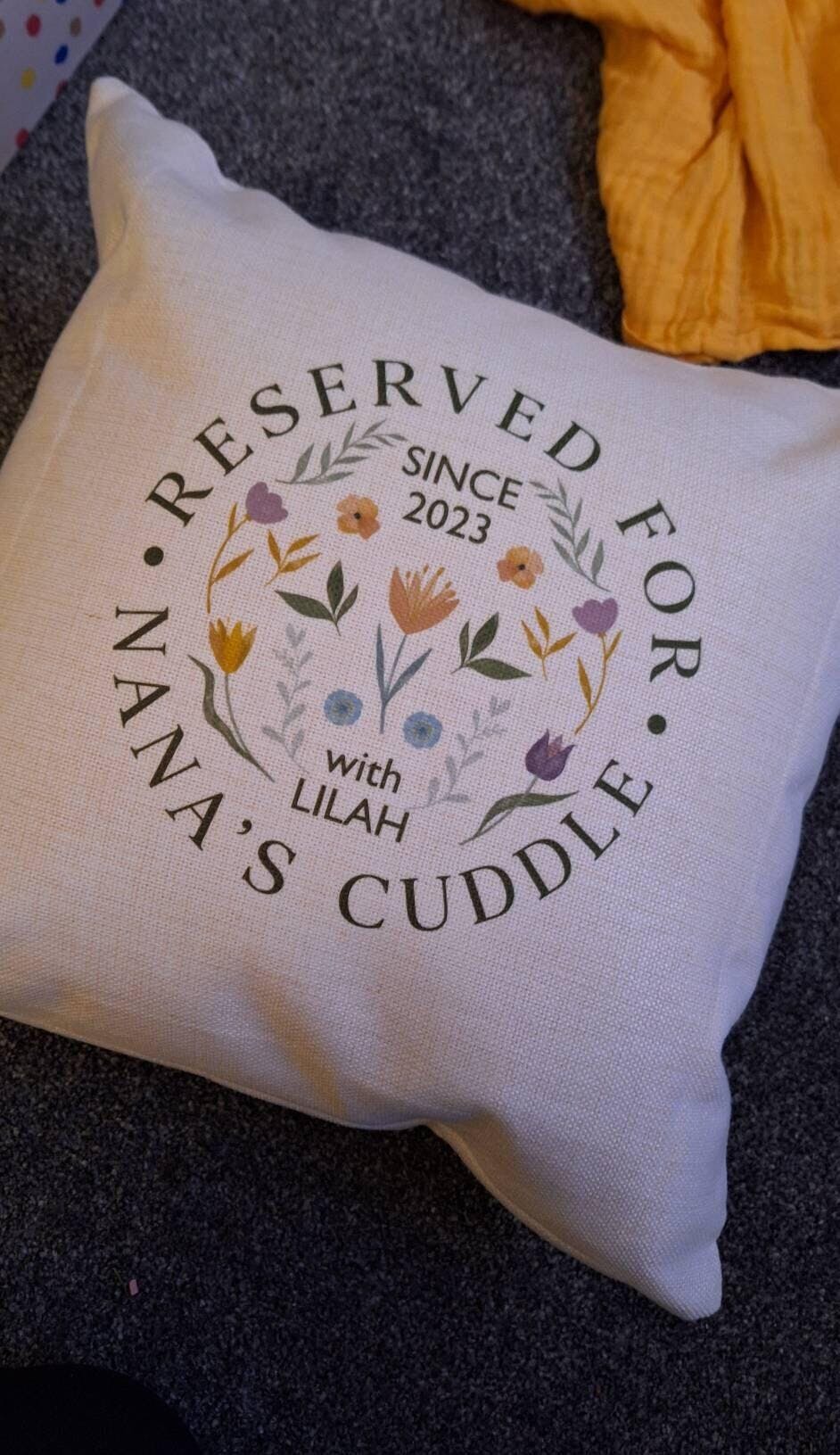 Introducing our "Reserved for Mummy's Cuddle" Cushion, customised with a name, making it the perfect Mother's Day, Christmas, or Birthday gift for a nanny. This personalised pillow is not only a thoughtful present but also a cherished keepsake that celebrates the warmth and affection of a special caregiver. Whether it's for Mother's Day, Christmas, or a birthday, this cushion embodies comfort and love, serving as a constant reminder of the bond shared between a child and their beloved nanny. Let this personalised gift express gratitude and appreciation for all the cuddles and care she provides.